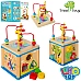 Цю іграшку оцінить кожна дбайлива мама. Незамінний дерев'яний куб 5 в 1, що розвиває, за методикою Монтессорі. Кожна сторона куба – це незвичайні завдання. Дрітовий лабіринт з фігурками тварин і комах, намистинами різних кольорів та форм сприяє розвитку дрібної моторики та логіки. Цей 3D-лабіринт, що знімається, може використовуватися окремо і зручно зберігається в самій коробці. Веселий барвистий годинник дозволить познайомити малюка з першим уявленням про час. Сортер з різнокольоровими геометричними фігурами пояснить дитині які бувають форми та кольори. Лабіринт з бджолою і сонечком, механізм з шестеренками розвивають логіку, просторове сприйняття і зорово-моторну координацію. Цей різнокольоровий бізикуб зачарує всіх дітей. Іграшка виготовлена з високоякісних матеріалів, покрита нетоксичною фарбою на водній основі та безпечна для малюків.