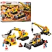 Набір містить 465 деталей, які дозволяють зібрати чотири круті моделі будівельної техніки: екскаватор, будівельний кран, бульдозер та самоскид. Кожен з них має свої унікальні деталі та функції, що додає реалістичності та розширює можливості гри.