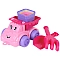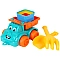 - Елементи набору: самоскид, лопатка, грабельки, формочки для піску