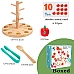 Дерево с яблоками: Главная часть игры – это дерево с ветками, на которых размещены выемки для яблок. Это выглядит не только привлекательно, но и позволяет развивать моторику рук ребенка, используя пинцет и ложку для перемещения яблок.