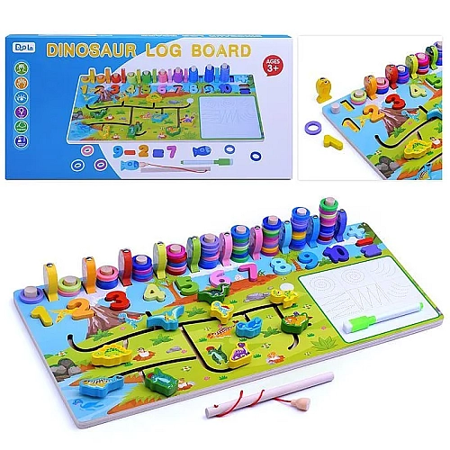 Описание Игра развивающая деревянная "Динопарк лабиринт" с доской для рисования и рыбалкой MD0825