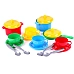 | Состав набора | 2 кастрюли, 1 сковорода, 3 крышки, 4 чашки, 4 блюдца, 3 ложечки |